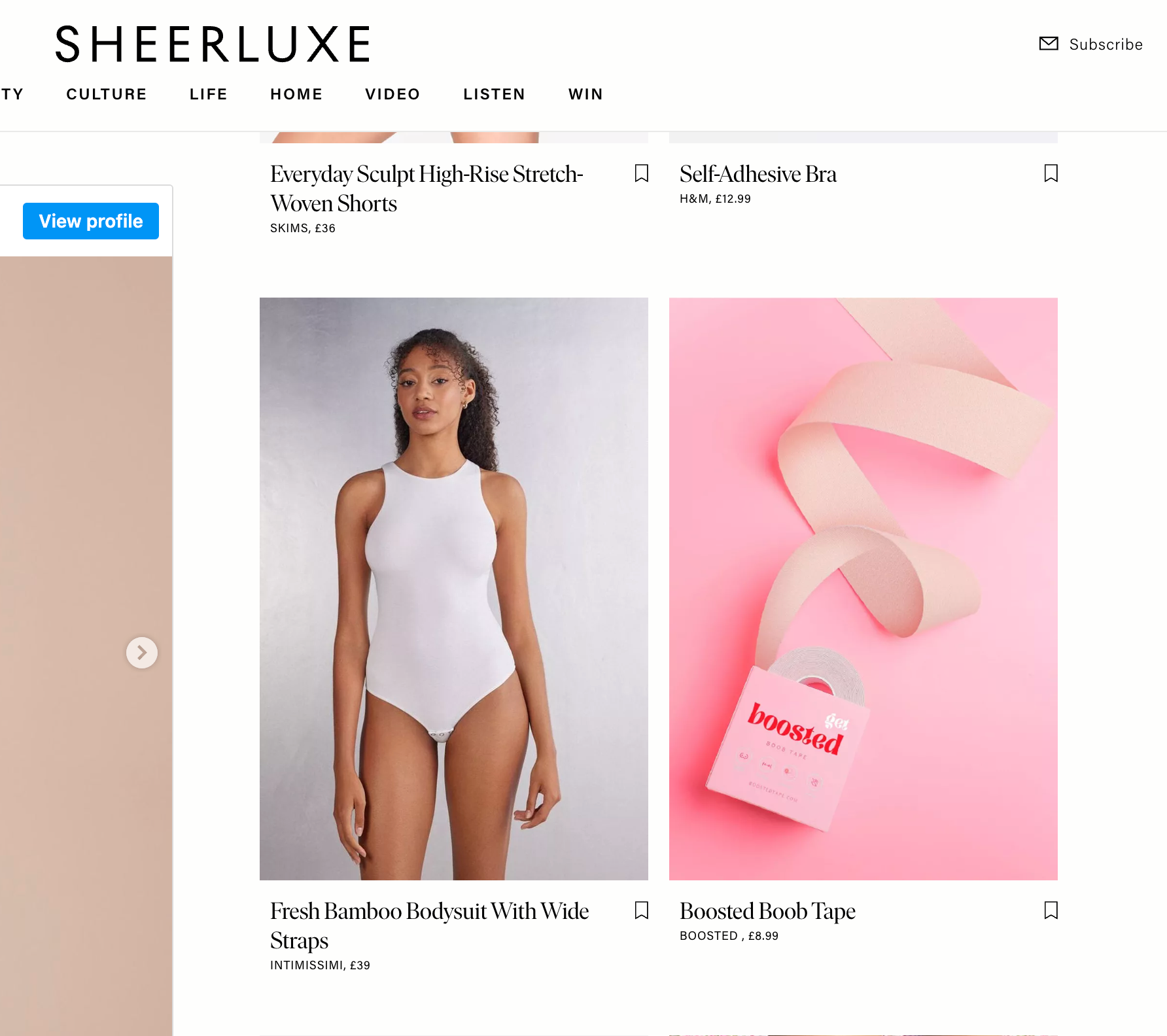 Boosted Boob Tape, Anti Chafe Balm & Resuable Nipple Covers where featured in a Sheer Luxe article.